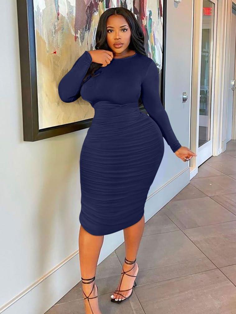 Get your hands on our exclusive BEAGIMEG Women’s Ruched Long Sleeve Elegant Bodycon Basic Casual Midi Dress(Navy) collection, now at a discounted price.
