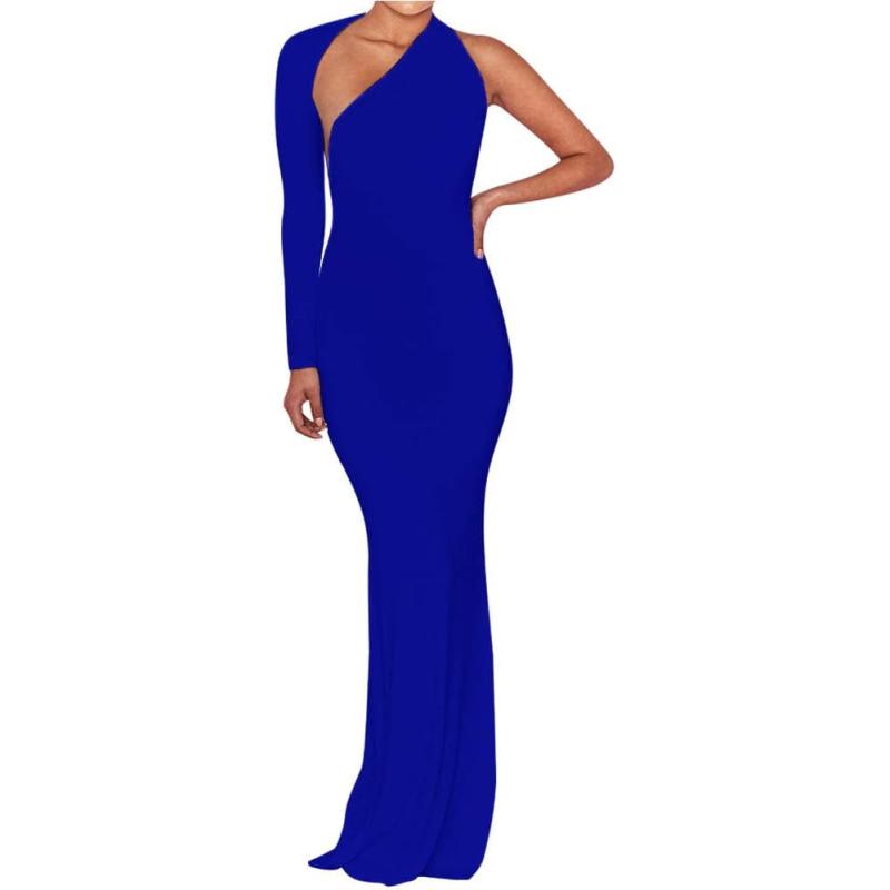 BEAGIMEG Womens Sexy Elegant One Shoulder Backless Evening Long DressRoyal Blue